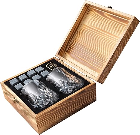 Whiskey Stones And Whiskey Glass Gift Box Set 8 Granite Chilling Whisky Rocks 2 Glasses In Wooden Box Best Gift For Men Fa Aliexpress