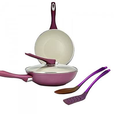 Bergner Ceramic Coated Non Stick Induction Cookware 5 Piece Set Skimmer Turner Included Amazon In Shoes Handbags