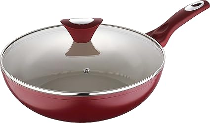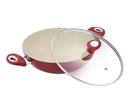 Buy Bergner Allure Forged Nonstick Aluminium Ceramic Coating Kadai Frypan With 2 Handle And Glass Lid 4 9 Litres Set Of 1 Red White Abizon Online At Low Prices In India Amazon In