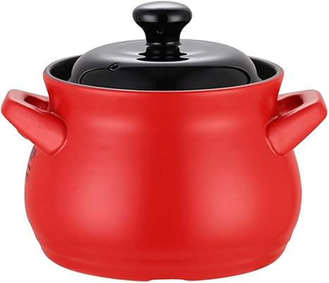 Amazon Com Stovetop Ceramic Casserole Ceramic Cookware Duty Heat Proof Ceramic Pot Bean Pot 4qt Red Pot Black Cover Kitchen Dining